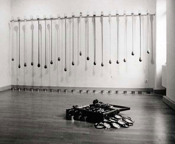 Alles fliesst (alles ist uberflussig) is an exploration of food, life and reproduction. Perpetuation of life is a striving force in both fauna and flora. Instinct for survival produces ever-evolving strategies for continuation of the species, seed propagation, and sperm production. Strange activities – such as the collection of blue objects by bowerbirds; the exotic dances of many creatures; or the production of tasty fruit on trees; bright coloured berries and scented flowers – in humankind have evolved into highly ritualized, aesthetic[ized], even fetish[ized] behaviours.