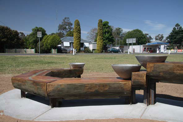 Artist Tricia Flanagan worked with the Singleton Public Art Committee for two months in 2007 to create the ‘Hunter River Sculpture’. The Hunter River is the theme of the sculpture. The river has a history that connected Singleton to the rest of the world and has been the life force for the region. The importance of the river to the traditional indigenous owners of the area is a significant and spiritual one. Since Benjamin Singleton first drove stock from Sydney to graze the fertile pastures of the region, the river has provided early settlers with a means of transport, water for agriculture and a source for growth.
