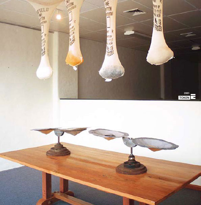 This site-specific work was produced in Newcastle. Newcastle is one of Australia’s largest ports that export resources such as coal, sand and wool to the rest of the world. Using the iconography of rural Australia the exhibition aimed to place economic systems and natural systems under scrutiny. Token confronts the issue of consumerism, asking us to re-evaluate our acquisitions considering their value in terms of cultural and environmental assets instead of monetary value.