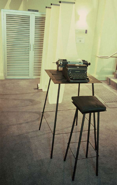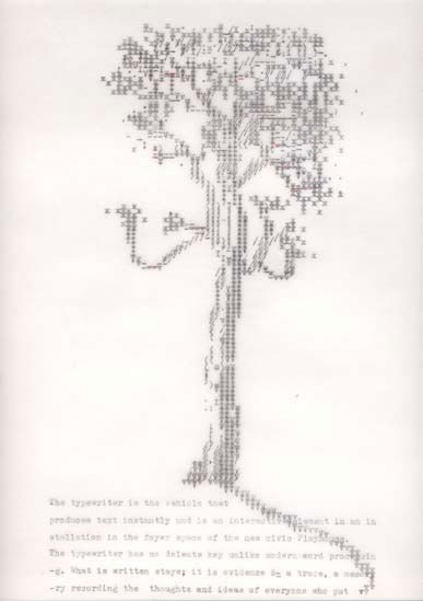 Typewriters were the theme of the exhibition; they were collected and donated to the project. The typewriter is a reminder of days of less visual literacy, when technology dictated the limits of textual communications – most people did not have a choice of fonts or text size, these things were left for the professional. Today the typewriter font itself is understood typographically to be old fashion or retro.