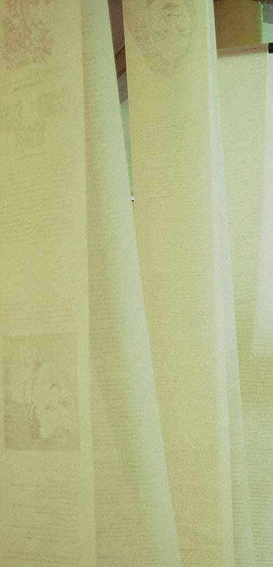 For this exhibition Flanagan creates an interactive sculpture in the foyer space of the civic playhouse. A typewriter, mounted on a high table, is loaded with a seemingly endless length of paper that runs from the typewriter through a series of rollers, the paper drapes from floor to ceiling repeatedly, working with the architecture of the space, displaying what has been typed over the period of the exhibition, a visible and ongoing story, eclectic poetry; a collection of the thoughts and images that have been typed. The typewriter has no delete key unlike modern word processing. What is written stays; it is evidence – a trace, a memory recording the thoughts and ideas of everyone who put their fingers to the keys.